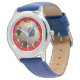 Kick off time-telling skills with this personalized soccer-themed boys watch! Featuring a bold soccer ball face with yellow hour numbers, red outer minute ring, and clearly labeled hands, this watch helps kids learn to read analog time with confidence. The custom name adds a sporty, custom touch across the center.