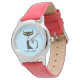 Ce design personnalisé de montre rouge en acier inoxydable présente un chat noir "atomique" moderne rétro du milieu du siècle avec de grands yeux jaunes et une queue bouclée. Vous pouvez facilement modifier l'orthographe du texte, le style de police, la couleur et la taille avec le bouton Personnaliser Zazzle.
