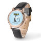 Ce design personnalisé rose or vintage bracelet noir bracelet e-montre dispose d'un chat noir moderne rétro du milieu du siècle "atomique" avec de grands yeux jaunes et une queue bouclée. Vous pouvez facilement modifier l'orthographe du texte, le style de police, la couleur et la taille avec le bouton Personnaliser Zazzle.