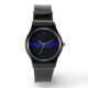 Un monogramme personnalisé Ligne Bleue Mince design symbolique sur une montre noire. Une excellente idée cadeau pour les rassemblements, les célébrations commémoratives et les occasions de commémoration. Trois lignes de texte pour rendre cette montre aussi unique que vous.