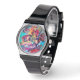 Whimsical, coloré, vibrant enchanté bois de fées dans la lumière lune.Acrylique -aquarelle peinture avec éclat d'or, feuille dorée et couleurs irisées