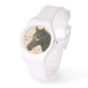 Gitana est le nom de cette belle jument de châtaignes sur cette montre. Le cheval extraordinaire a une longue crinière qui coule, épaisse et luxuriante. Sa personnalité douce et aimante se voit à travers ses yeux expressifs. Cet extraordinaire cheval marron foncé était un plaisir de peindre, mais j'ai particulièrement aimé travailler sur sa merveilleuse crinière. Malheureusement, Gitana est décédée, elle était une familière très aimée et elle est une partie très spéciale de ma collection de portraits équins. C'est une montre personnalisable, vous pouvez la personnaliser avec votre propre texte. Je suis sûr que cette montre d’art pour cheval unique fera un cadeau cool à tous les amateurs de chevaux et à tous ceux qui aiment simplement une montre au poignet originale. Le portrait original de l’animal de compagnie de Gitana a été peint en pastels doux. Si vous êtes intéressé à commander un portrait d'animal de compagnie pour vous-même ou comme cadeau spécial pour quelqu'un, n'hésitez pas à m'envoyer un courriel pour plus de détails. J'ai hâte de vous "bavarder" :)