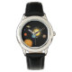 Cette montre donne l'illusion de regarder dans l'espace profond avec la terre lumineuse et le soleil dans votre ligne de vue. Ces planètes sont des dessins originaux de Mozartini et sont également disponibles sous forme de murs, de plancher et de vignettes pour vous permettre de faire vos propres arrangements planétaires dramatiques.