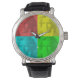 Portrait de Beethoven en carré rouge, jaune, bleu et vert. Image avec effet sculpté appliquée au design. Montres personnalisées. Idée cadeau pour les fans du compositeur de musique classique allemand.
