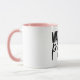 Magnifique Montre & Pray en céramique tasse de café. Blanc à l'extérieur avec une poignée et un intérieur vernis couleur. Le design est enroulé autour de l'avant de la tasse, le plaçant à l'écart des conceptions bifaces habituelles.