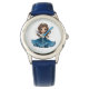 Montre classique en cuir pour enfants en bleu avec une jolie petite impression princesse. Choisissez cette montre dans plusieurs styles. Customisez cette montre ou achetez tel quel. Image sous licence