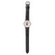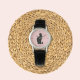 Une jolie montre avec un design graphique original Mango Moon Studio. Le visage de la montre présente une silhouette de chat noir élégant contre un arrière - plan rose pâle, créant un contraste délicieux qui ajoute une touche de fantaisie à votre poignet.