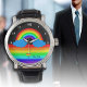 Montre : montre de mode Cool avec drapeau arc-en-ciel, coeur arc-en-ciel et texte facilement customisé "New York". Fab Rainbow montre en couleurs arc-en-ciel pour LGBTQ, Gay, Lesbian, Pride parade, mariage et autres occasions.