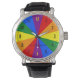 Offrez cette montre à votre ami avec cette variante du drapeau LBGTQ. Montrez que nous sommes tous humains et que nous devrions être fiers de ce que nous sommes. Rendons l'Amérique gay à nouveau ! Les rayures sont les six couleurs de l'arc-en-ciel. Les rayures sont organisées en starburst. Ils rayonnent vers l'extérieur. Deux fois six, chaque heure par couleur. Police gothique sans serif ordinaire. Marque NUMÉRIQUE.
