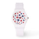 Elegant, stylish and sophisticated pattern with stars in red and blue color on white background. Modern and trendy gift, perfect for the stars and 4th of July lover in your life.