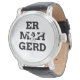 Montre de design de texte de typographie dorée et amusante avec un mot du mème populaire d'Ermahgerd. Ermahgerd est une façon très odieuse et écoutée de dire "Oh mon Dieu !" Customisez avec votre propre texte et couleur arrière - plan. Utilisez un traducteur ermahgerd comme celui-ci [http://ermahgerd.jmillerdesign.com/#!/translate] pour rendre votre texte personnalisé encore plus stupide !