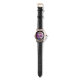 Clown rose, coloré, capricieux, drôle jouant du bugle avec un hibou expressif et des notes musicales joyeuses, fleurs, feuilles en rouge vif, fuchsia, violet, violet, bleu, couleurs blanches, aquarelle de Bulgan Lumini (c)