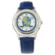 Robert boys nom de ligne unique signifiant chevaliers heraldry boucliers enfants montre poignet. Bouclier style Chevalier monogramme lettre R nom d'art simple cadran numéroté parfait pour dans les tons de vert, bleu blanc et gris. Personnalisez avec votre propre nom et nom signifiant pour un grand cadeau personnalisé unique, cet exemple est pour les noms avec la lettre R et lit actuellement Robert A flamme brillante. Autres articles correspondants disponibles. Dessin de protection unique, avec le visage, la couronne, l'étoile et l'art graphique monogramme R, recherche de nom, et design par Sarah Trett pour www.mylittleeden.com et mon magasin namesense.