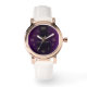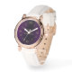 Montre Rose Plum trempé Or Blanc Regarder en cuir