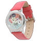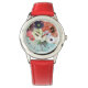 Elégante montre florale, roses blanches rouges et anémones bleues sur arrière - plan turquoise avec pierres précieuses imprimées roses.