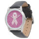 Magnifique montre classique en cuir noir avec Pink Ribbon & Faux design Parties scintillant pour la sensibilisation au cancer du sein