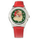 Montre rouge en acier inoxydable pour enfant avec une image vintage de vieux St. Nick jolis sur le vert et face en option en argent horloge. Voir la collection de montres bracelets de Noël dans la catégorie ACCESSOIRES de la section VACANCES.