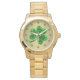 Montre en or surdimensionnée Unisex avec l'image d'un shamrock émeraude sur or brossé et une face émeraude. Voir la fiche de sculpture en acrylique, le charme rond, le porte - clé de sculpture en acrylique et le collier rond Voir toute la collection St. Patrick's Day Watch sous la catégorie ACCESSOIRES dans la section VACANCES.