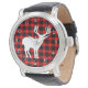 Silhouette de cerf blanc avec de grands bois sur un plaid noir rouge avec des numéros de temps blancs. Le cerf de cerf dessiné et plaid numériquement créé par ©Tina Hesskew de Fishing Hunting Life.