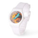 Cette Montre en Silicone féminine de Poisson Anemone sportive et amusante est le cadeau parfait pour cette femme amoureuse de la mer dans votre vie, ado, ou femme aimante aimante plus âgée. La montre en silicone blanc présente l'art d'un poisson anémone coloré collé entre les bras piquants d'un anémone marin.