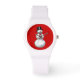 Snowman dans un chapeau, les mains de montre sont ses bras. Couleur Arrière - plan personnalisable. J'ai utilisé le rouge mais vous pouvez modifier la couleur arrière - plan comme vous le souhaitez.