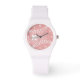 Cette montre à softball amusante présente un graphisme simple rose qui a une texture chic numériquement créée et des coutures blanches - personnaliser avec son nom et son numéro de monogramme ou de maillot - par katz_d_zynes