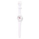 Cette montre sportive à thème de softball dispose d'une paire de graphismes simples et minimalistes de softball (montrant seulement les points de suture du softball en rose et noir) qui sont légèrement décalés l'un de l'autre sur un arrière - plan blanc personnalisable avec des chiffres de visage de l'horloge grise - personnaliser avec nom du joueur et monogramme - par katz_d_zynes