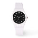 Montre de sport noir et blanc avec des chiffres noirs sur le visage blanc. Cette montre est personnalisable. Ajoutez votre propre photo ou illustration. Supprimez les nombres pour un style minimaliste.