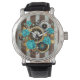 Montre Steampunk Clock and Turquoise Roses on Striped