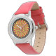 Un design très lumineux et coloré. Un soleil stylisé avec un centre en spirale et aux couleurs flamboyantes remplit toute la face de montre. Aucun chiffre n'est sur le visage. En raison de la conception des mains, la version en acier inoxydable pourrait être un peu plus difficile à lire que les autres styles.