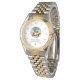 Ajoutez votre logo et votre texte d'entreprise couleur à cette montre à poignet à deux tons d'or et d'argent pour hommes. Fait un don promotionnel ou un cadeau d'entreprise pour les clients, les vendeurs, les employés ou d'autres personnes spéciales. Pas de commande de quantité minimale, juste une ou plusieurs. Pas de frais d'installation.