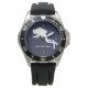 Montre de plongée personnalisée. Plongeur avec un champ de texte au centre inférieur. Blanc sur un arrière - plan bleu marine.