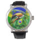 Le Toco Toucan brésilien sur la jungle tropicale, portant une écharpe aux couleurs du drapeau brésilien. Pour les amoureux du Brésil et pour les supporters de la Coupe du Monde de football Brésil 2014 ! Art vectoriel original Copyright BluedarkArt TheChameleonArt