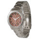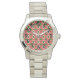 Cette montre pour femmes a un design géométrique de triangles rouge et rouge profond répétés avec des cercles verts sur un champ de blanc cassé. Voulez-vous le même design dans des couleurs différentes? Message-moi.