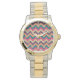 Un amusant motif en zigzag violet, turquoise, corail, rose et sable, couleurs rappelant les fleurs tropicales et les récifs coralliens, crée un grand motif pour l'été.