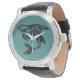 un tatouage noir et blanc sur une baleine à orques ou d'autres poissons sur une montre décorative turquoise
