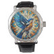 Montre Un oiseau bleu serein : Oeuvre en verre tendu