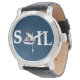 Sail text illustration with sailing boat decoration on dark blue background. C'est possible to change the background color and to add different one to the design with your choice.