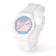 Pour les amateurs de bateaux - l'oeuvre de ZoeSPEAK sur cette montre est une illustration originale inspirée des Couleurs de l'année Pantone 2016 - Rose Quartz & Sérénité, avec le vent remplissant une voile rose clignotante, des vagues de bleu, et le coucher du soleil (ou se lever) dans une lueur rose dans le ciel bleu clair et sur l'eau.