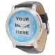 Ce modèle de montre personnalisé est un design simple et élégant de garde-temps avec des nombres blancs minces qui indiquent l'heure. Pour customiser ce produit, téléchargez votre propre image ou photo arrière - plan comme indiqué ci-dessus.