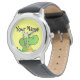 De mignonnes montres pour les enfants qui peuvent être customisés. Un joli dessin d'alligator de dessin animé et un endroit pour ajouter votre propre texte sur un arrière - plan jaune. Les enfants adoreront leur propre montre personnalisée.