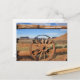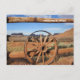 Picture of a wagon wheel in front of the scenic panorama of Monument Valley, Utah. You can delete the words "monument valley", or replace with your own message.
