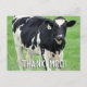 This silly postcard features a photograph of a young dairy cow with the words "thank moo" included on the front. The back of the postcard is blank, so you can customize with your own text or hand-write a message.