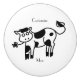 Black and white cow eating flower, to personalize by changing to your name on any background colour