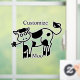 Black and white cow eating flower, to personalize by changing to your name on any background colour