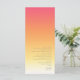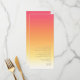 The background for the pieces in this minimalist wedding set is an eye-catching gradient of colors from deep rose pink through tangerine and yellow to white. The wedding menu card shown here features a sleek, modern layout and contemporary sans serif font to add to it's appeal. Easily add your menu selections, initials and wedding date using the provided template. Search ID741 to see the complete set of matching products in Hot Summer or choose one of the other available gradient combinations to suit your wedding color palette.