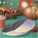 The background for all the pieces in this minimalist wedding set is an eye-catching gradient of colours from indigo through peach and palest yellow. The wedding 'Love Is All Around' paper plate shown here features a sleek, modern layout and contemporary sans serif font to add to it's understated elegance. Easily add your names and wedding date using the provided template. Search ID741 to see the complete set of matching products in 'Indigo Sunset' or choose one of the other available gradient combinations to suit your wedding colour palette.