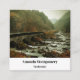 Business cards with a nature photograph. Moody and beautiful landscape. A secluded stone bridge beside a lively river with a forest and mountains surrounding the area.