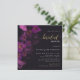 Magenta, fuchsia and purple orchids, hand-painted in a rich, lush garland wreath with wisps of greenery and tulle, make for a modern, sophisticated, elegant yet chic bridal shower invitation. The elegant calligraphy, in the hue of gold, makes this stylish black and purple invitation even more elegant.