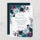 Moody Boho | Teal Dark Floral Silver Frame Wedding Invitation